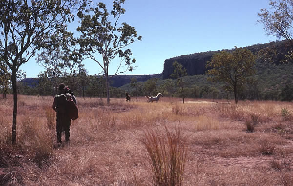 making good time and after walking 14 kilometres I saw an Aborigine next to a tree carving his name in it. It was like a hallucination, I couldn’t believe my eyes, here I was in the middle of nowhere and out of the blue I see an Aborigine. It seemed like something out of a movie and when I got closer I recognised the young guy because I had met him at Kalumburu Mission when I visited it on another expedition in 1983.