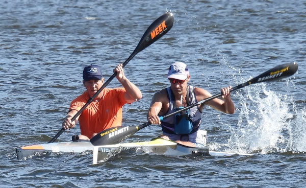 As we paddled towards the buoy turn 5 times with the wind, and back towards the finish line against the wind I passed a few non-portage paddlers, like Julie McDonald and Peter Ward 2 or 3 times. Non-portage paddlers gained a few hundred