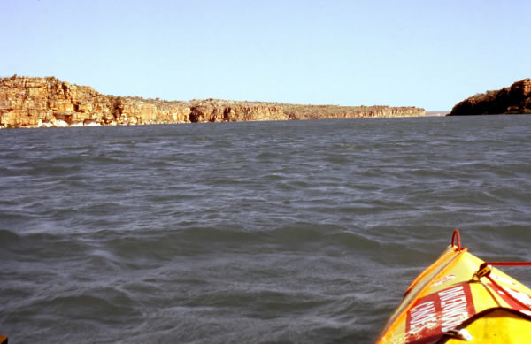 After stocking up with fresh water from Casuarina Creek, I headed further upstream with the tide. Massive vertical cliffs lined the river and crocs mingled with the mangroves. When the tide turned I left this picturesque place and headed once more out to the