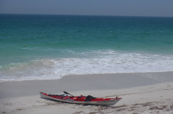 early in the afternoon having paddled a few kilometres further than my scheduled 60 kilometres per day. I was heading along what the tourist board calls the Turquoise Coast which is a 250km stretch of shallow coastline running from Leeman to Dongara protected from large offshore swells by a scenic chain of shallow reef and islands about five miles offshore. These protected waters and especially the conveniently placed islands made for some great lunch stops and allowed me to avoid punching in