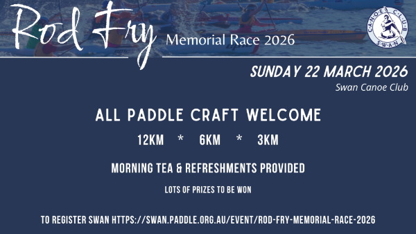 Rod Fry Memorial Race 2026 Sunday, March 22, 2026 Registrations close 11.59pm Friday March 20 2026. All paddlers in team craft must enter individually. THE RACE Where: