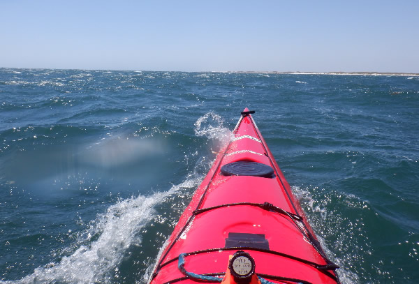 determination that I would keep myself safe for the remainder of the trip and successfully meet her in Kalbarri the following Saturday. After having an early lunch at Point Louise surrounded by idyllic turquoise waters and clear skies I jumped back in my kayak and was delighted to find that the wind was finally offering some help to push me along as I was heading more northerly and the wind had straightened, coming more out of the south now. I made excellent progress and arrived at my campsite