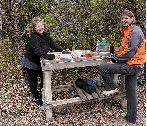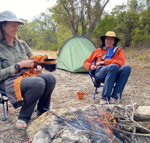 Kate and Sue relaxing and getting warm.