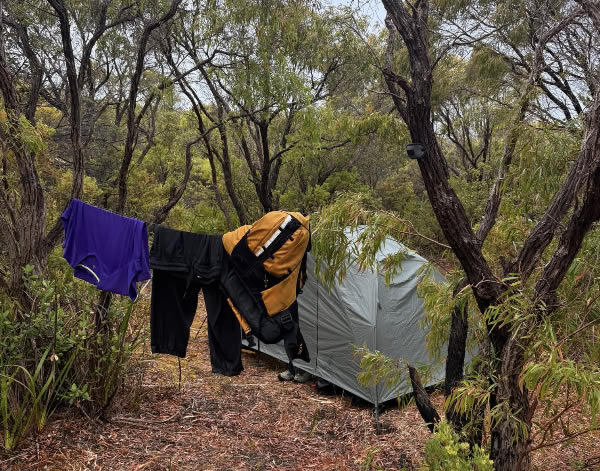It was a kayak trip down the Donnelly River to wild camp at the river mouth. It rained wildly and heavily and we couldn't believe we would arrive at our destination so wet and cold. Who knew summer in Western Australia could lead to us almost getting hypothermia? After setting up camp and changing into warm, dry clothes, an exploratory beach walk was enjoyed.