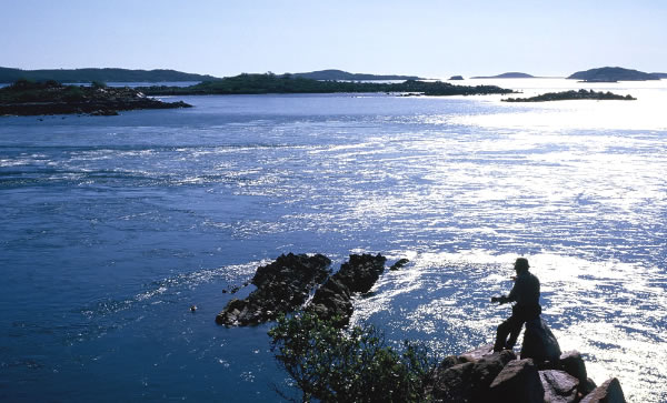 violent eruptions. Relief was in sight as we crossed the entrance of the inlet and moved away from the powerful tidal effects.