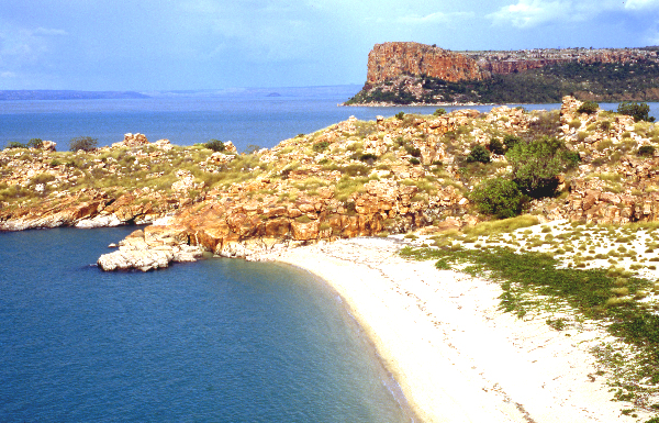 of Doubtful Bay was a stunning sight from the water but more so from the cliff tops. The wet season was hot and humid but it had its advantages as we found another freshwater creek. Days later we arrived at the pearling settlement of Kuri Bay. Nothing could please us more than to have a short rest, collect our food packs and receive the hospitality of the management.