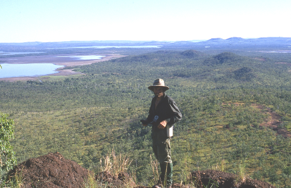 Already weary from our ¾ kilometre trek, we were faced with the difficult task of spiralling our way up the rocky slopes of the cliff. Rests were frequent. On top of the ridge Ken wheeled his machete around, trying to slash the tangling vines, but with little effect. We had achieved little by nightfall, the terrain, heavy packs and the heat made us stop regularly.