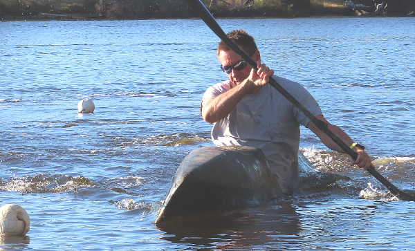 It wasn’t long before paddlers in the other divisions behind started passing me but they didn’t help me go any faster because they were all too fast for me to washride them. Robin, who was at least 200 metres ahead was slowly extending his lead. I did however think I was catching him at one stage, but I must have been dreaming as when I left the
