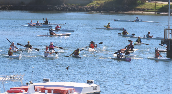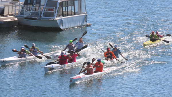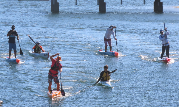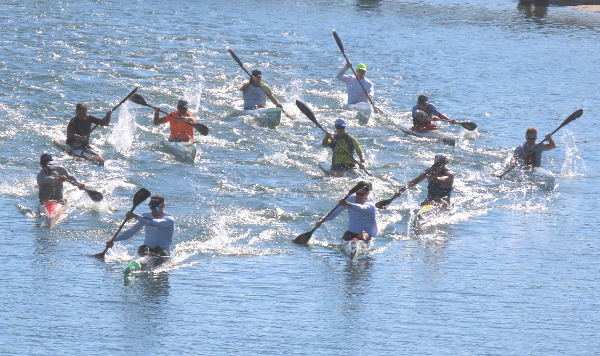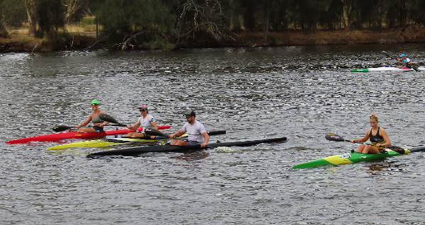 turn up with all the gear and be the compare for the day. To make sure I got a good parking spot I was up at 5.00am for the trip to Mandurah. With all the volunteers knowing what to do the race was away on time starting with the early SUP division going well ahead of the rest.