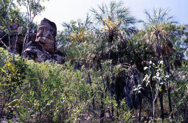 we reached Greys turning point on the 10th April 1987 we celebrated Kens 41st birthday with some staminade and dried fruits. With lighter packs and extra enthusiasm our daily walking mileage increased. Greys meandering return journey took us through fertile country of the Glenelg River and close to the large expanse of mangroves and inlets of the Prince Regent River and then south west again to Mount Lyell. Our march continued north-westerly passing Mt Stewart, Mt Trevor and we walked parallel