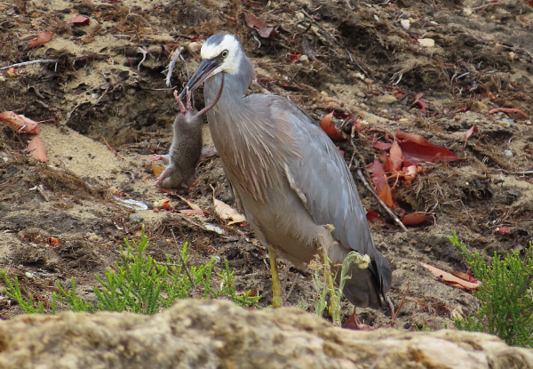 White Faced Heron with an unusual catch.