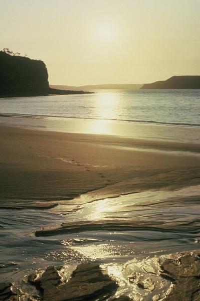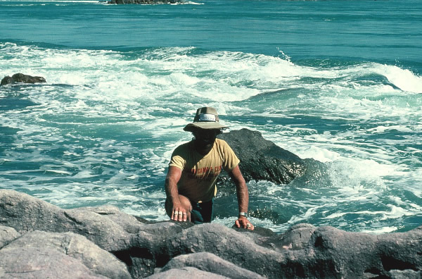 In the early morning darkness, toilet duties took me along the beach, while Ken busily hauled his gear off a rock ledge. There was a slight chill in the air and the dew had dampened the sand and grasses around me. I dug a hole in the sand and squatted and as I looked out towards the calm ocean and silhouetted cliffs, I day dreamed. A tinge of