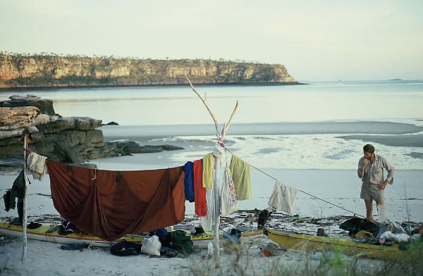 sadness streamed through my veins at the thought of leaving these unique surroundings. It seemed hard to believe that we were the first to retrace George Grey’s 1838 inland expedition and we were at the same place as Grey was exactly 149 years to the day. Now after weeks of exhausting paddling and backpacking we only had 24 more days of paddling back to our finish destination, Broome. As I quietly gazed out over Hanover Bay, studying the stars and the faint shadows of the cliffs, my tranquillity
