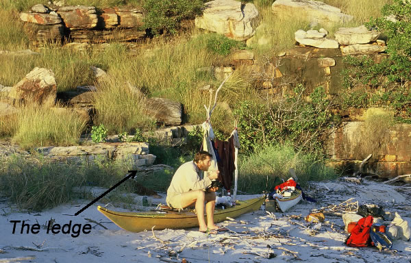 Just before Battery Point a crocodile started chasing us from its territory. We could do nothing but to paddle as fast as we could and although it kept up, it didn’t try to attack. Then as we were paddling to Hall Point Ken was hit by a shark so it was a good time to camp. Ken was tired when we landed and seemed to be a little moody so I kept my distance. He had been suffering from a bad back most of the trip so I don’t know if it was reoccurring. I gave him a massage or two on the way to the walk area to try to ease the pain but he wasn't keen to continue with them, even if it helped. Ken hadn't paddled every day in his training so he wasn't used to it and his back suffered. Since the walk our