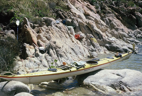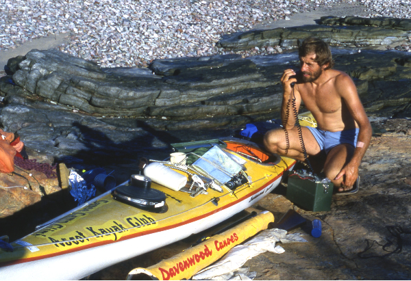 On this trip I carried a Flying Doctor Radio and made radio schedules to the base informing them of our position. It was a big item that I had to carry inside the cockpit between my knees. A Nordkapp kayak has a very small cockpit so it was a