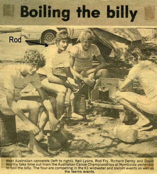 Rod (second from left) was only about 16 when he entered the Australian Slalom championships at Nymboida, NSWs. He was in my team event (3 paddlers) and even though he had only been paddling a short time, I believe he got less penalty points than me.