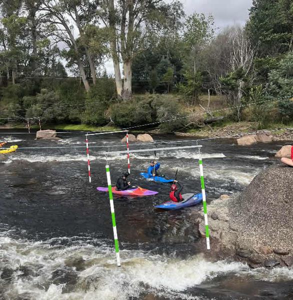 Slalom in Tasmania On the Forth River in Tasmania the water can just be turned on giving the juniors some white water to play in.