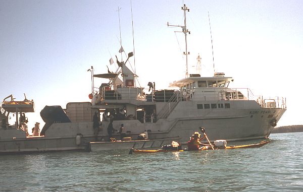 On June 8th, with 200kms of our 700km paddle behind us, Ewen and I toiled against large relentless waves, south-east of Koolan Island. It was a pleasure to be close to an island after being rammed by a shark and battling the elements for 3 ½ hours. Exhausted, we paddled in silence along the rocky shoreline slowly creeping towards a semi-circular